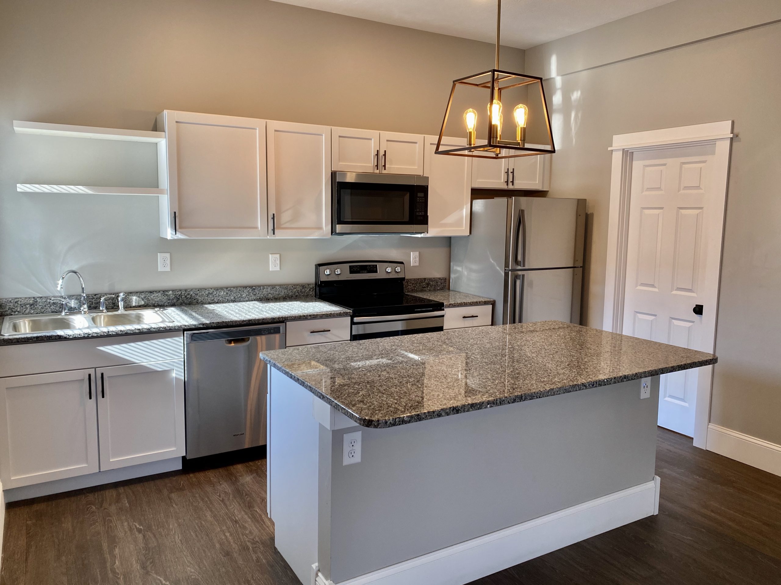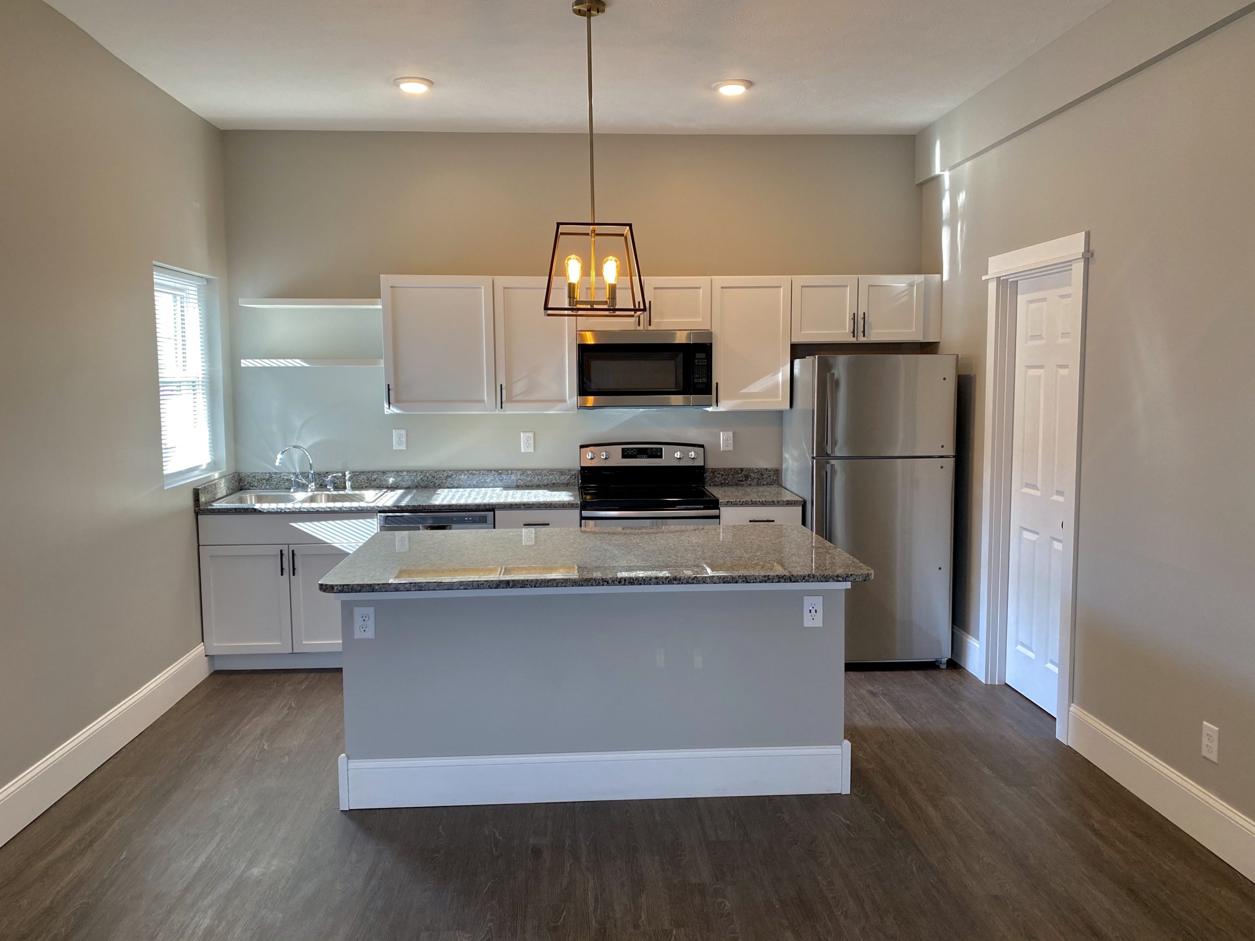 Modern 2-bedroom apartment featuring an open-concept kitchen with granite island, premium finishes, and abundant natural light throughout