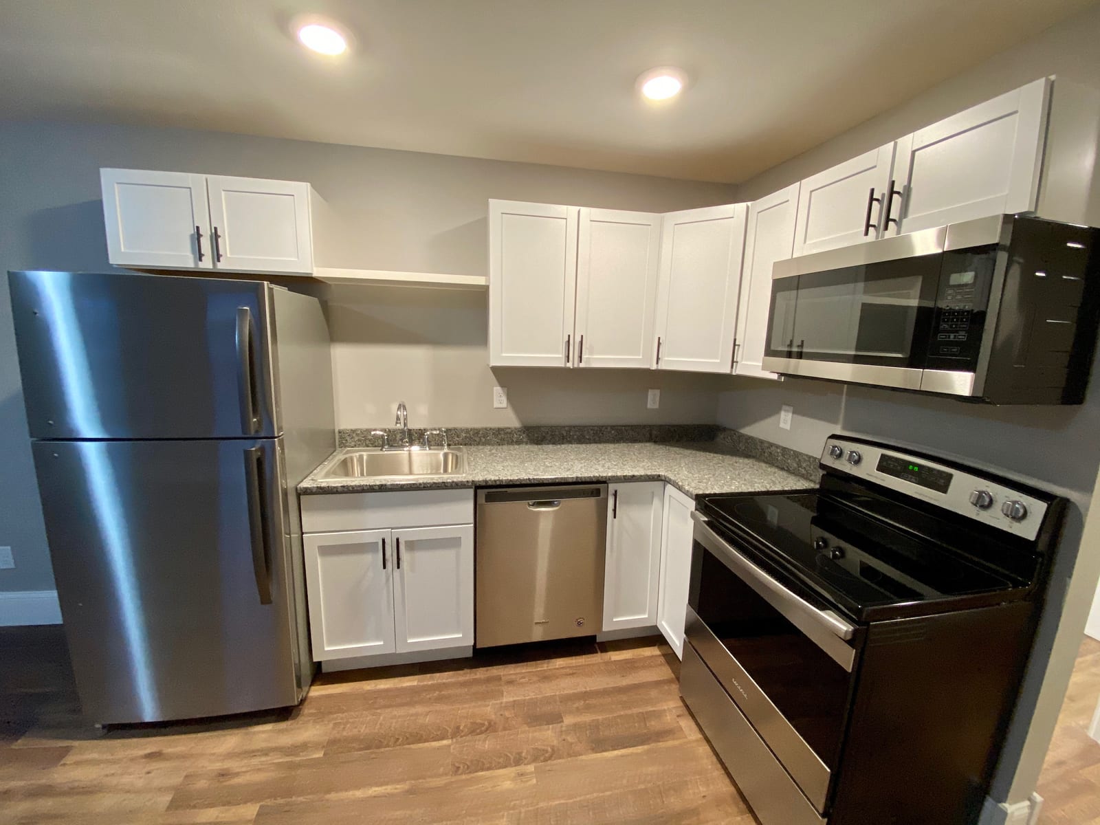 *Available for pre-lease for 6-1-26! Spacious two-bedroom unit with modern finishes throughout this 662 sq ft space. Features granite countertops, white cabinetry, stainless steel appliances including dishwasher, and beautiful hardwood floors. Also available fully furnished as a corporate unit for an additional $200/month.